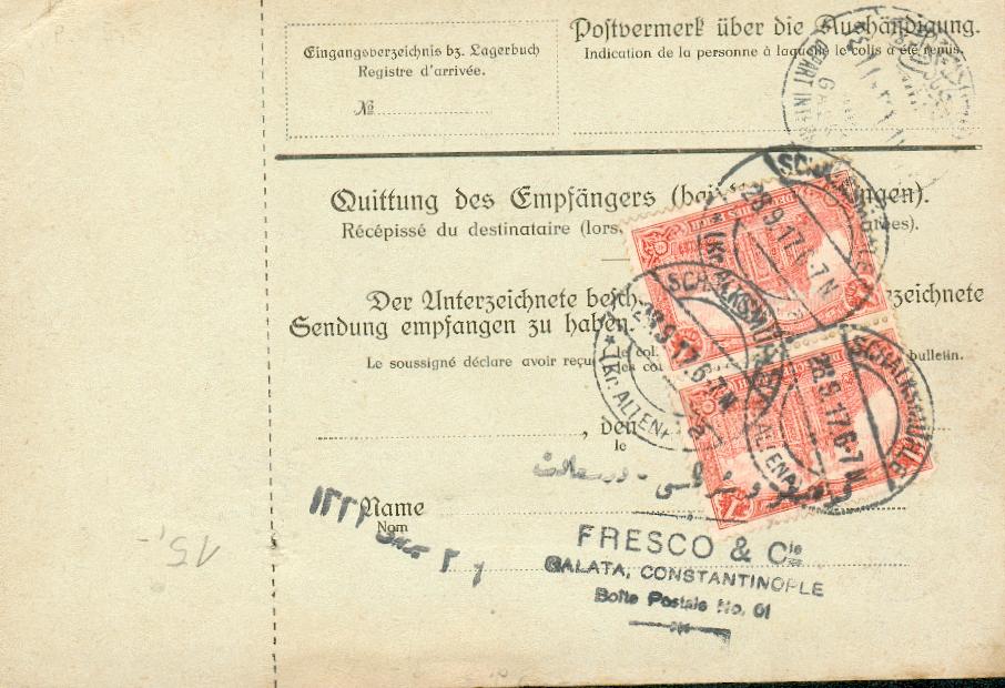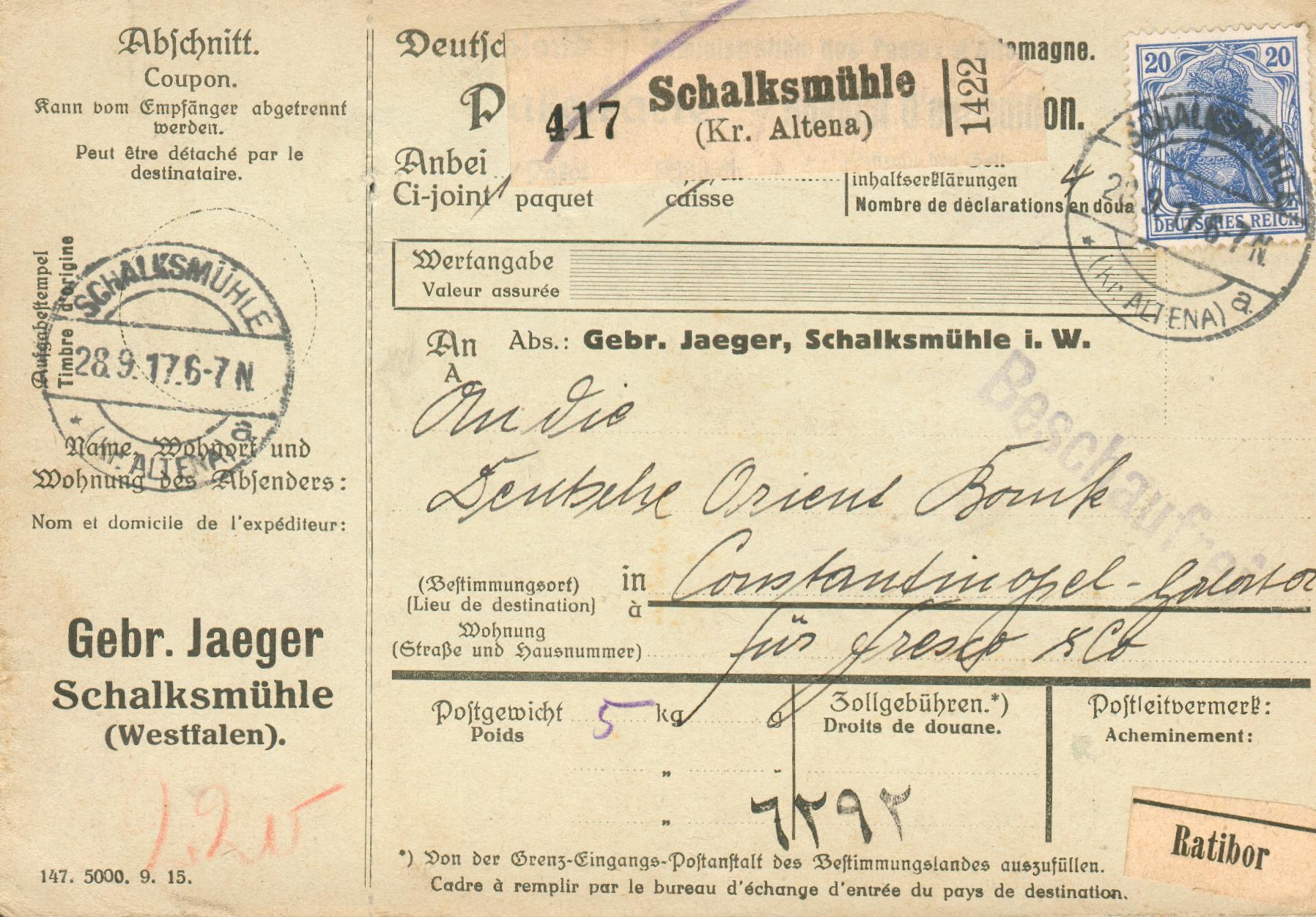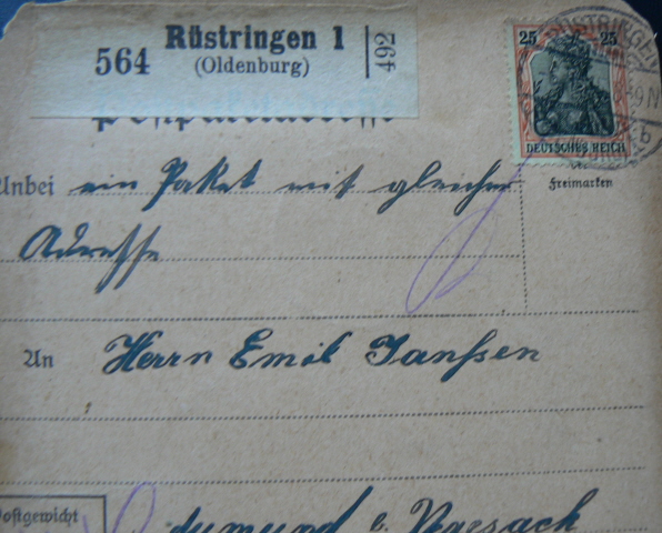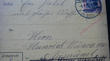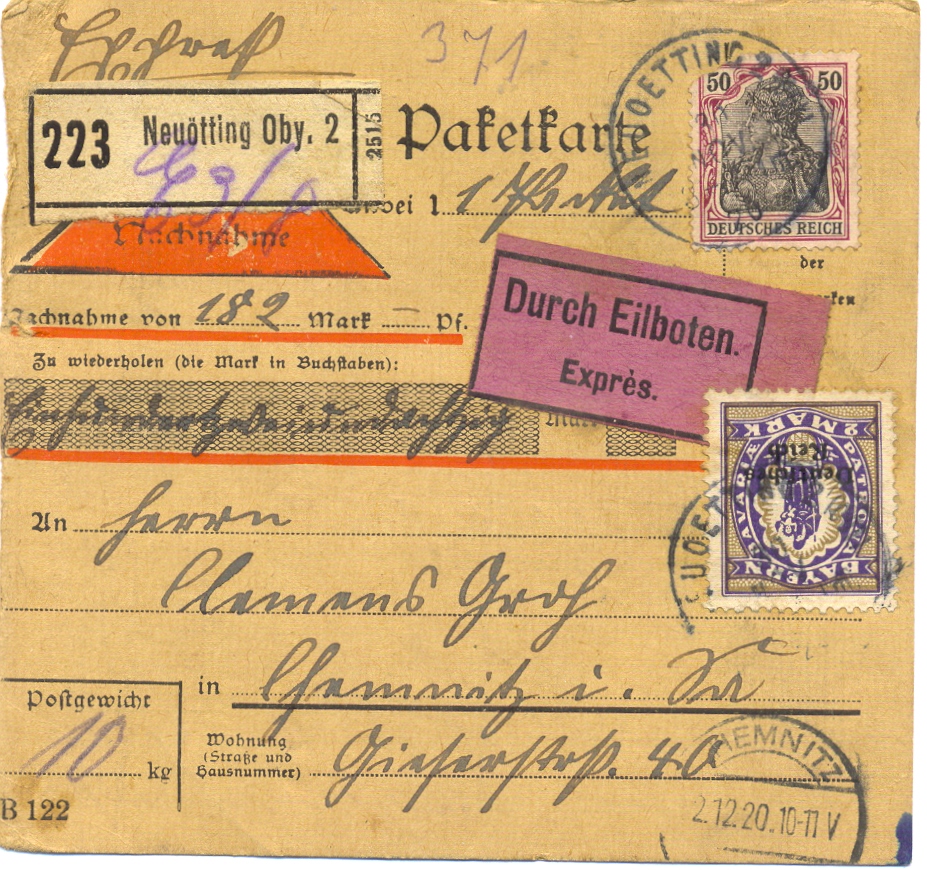 Mischfrankturen dieser beiden Serien sind nicht häufig, und noch dazu auf Eilboten NN Paketkarte. Hinzu Gewicht 10Kg. Schööön.