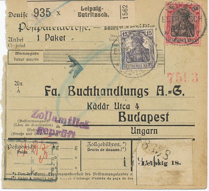 Paketkarten mit Germania Marken.