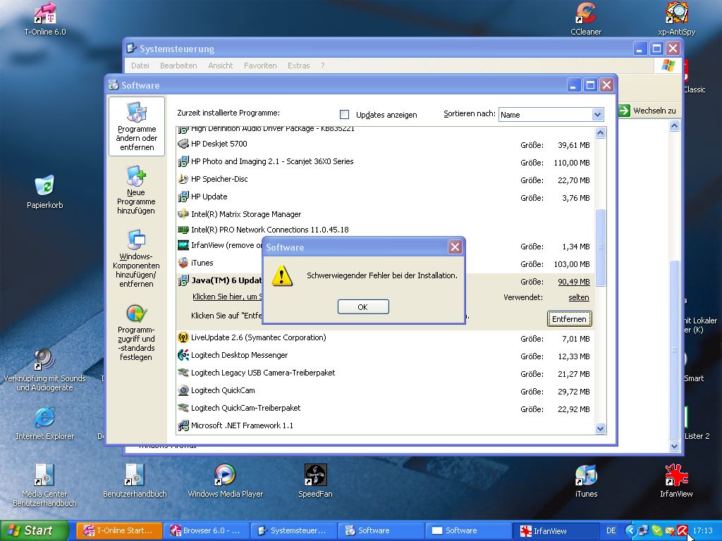 Ich habe einige Daten von Java gelöscht. Nun wollte ich das Programm löschen, aber das geht nun nicht mehr. Siehe Sreenshot von der Meldung. Was kann ich machen? Bitte in einfachen Schritten erklären, bitte! PC- Laie!