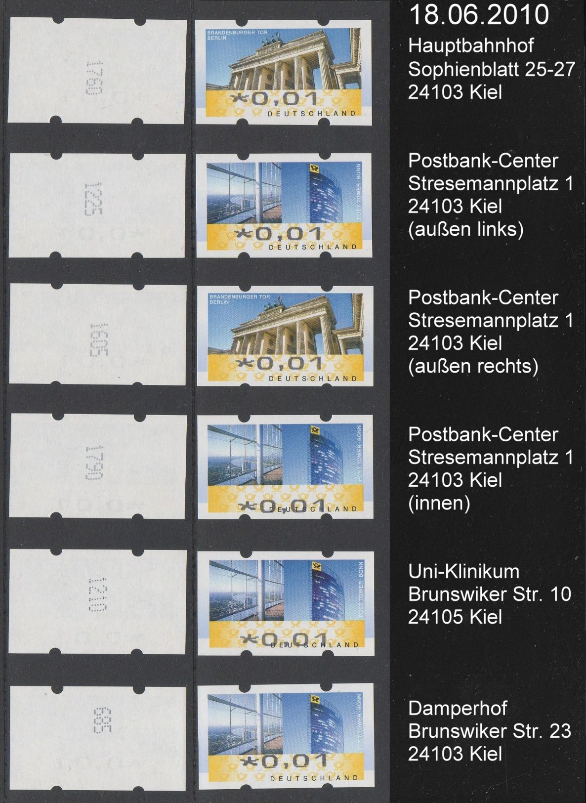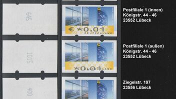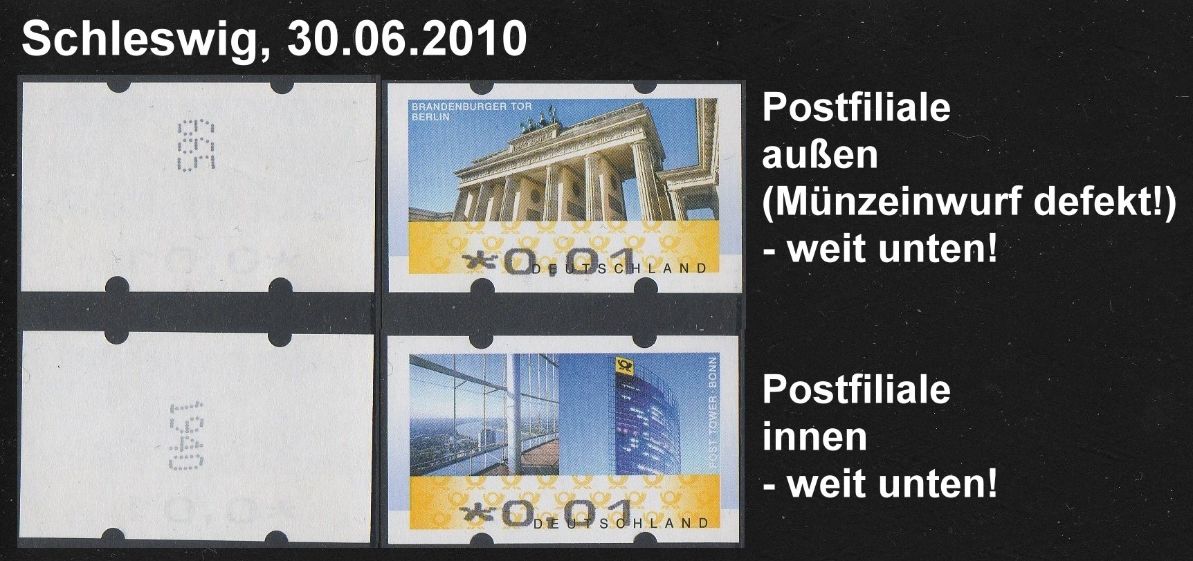 Die Automaten in Bad Segeberg hatte ich vorgestern auch besucht! Die Wertaufdrucke erscheinen relativ weit unten. Bei dem Automaten in der Postfiliale erscheint der Aufdruck extrem weit unten, so dass häufig auch Teile davon auf der nächsten Marke - oben - zu sehen sind.