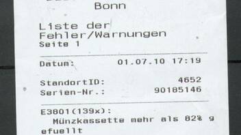 Auffällig war, dass der Münzeinwurf beim Automaten vor der Postfiliale defekt war! So bekam ich - am Nachmittag (!) - die Quitttungen Nrn. 0001, 0002, 0003 und 0004, weil anscheinend außer mir kaum jemand eine "geladene" Geldkarte dabei hat...