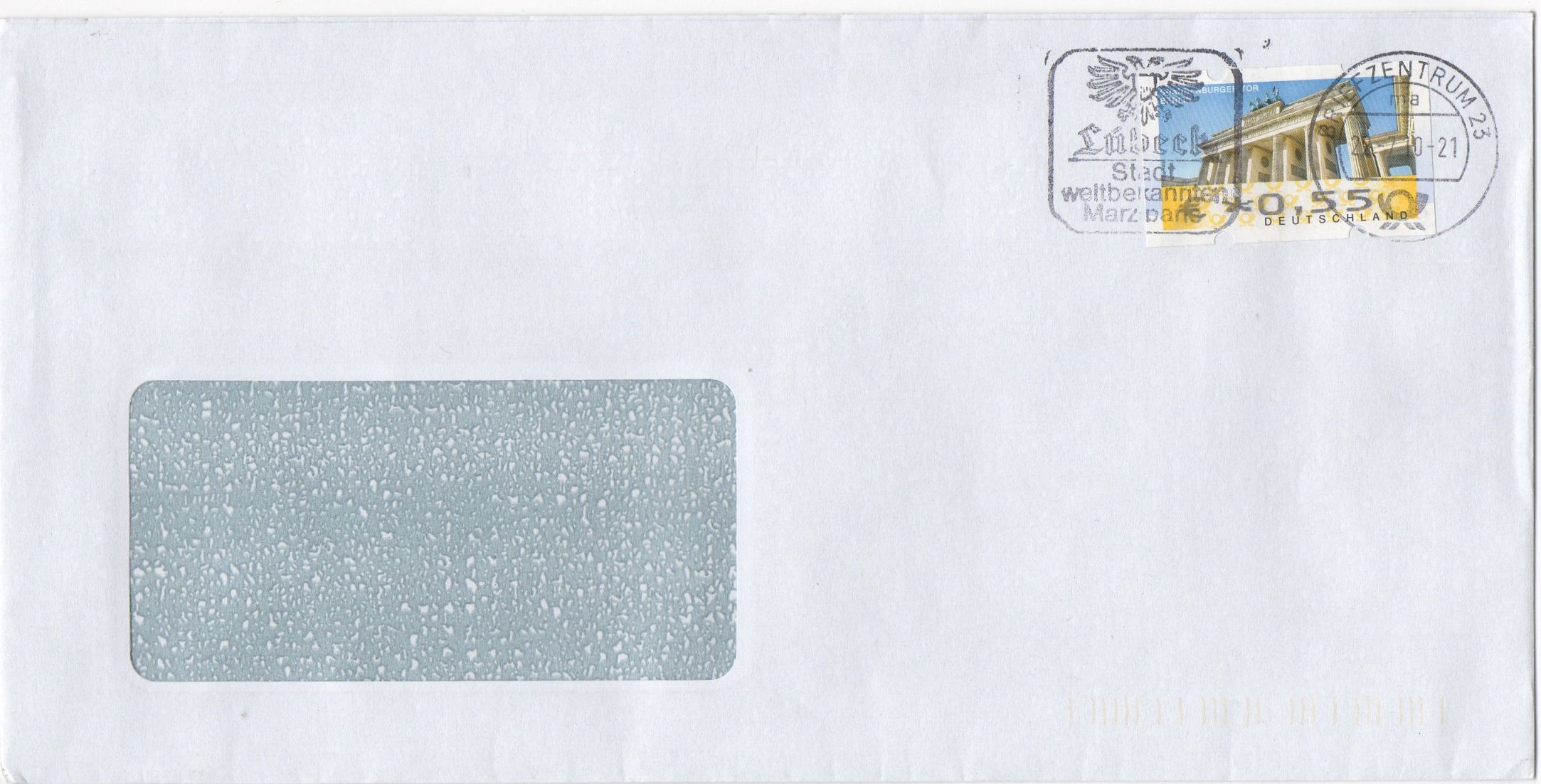 Auch gestern bekam ich einen schönen Bedarfsbrief aus Marzipanhausen mit der 55er "Brandenburger Tor Berlin" mit €-Zeichen!
