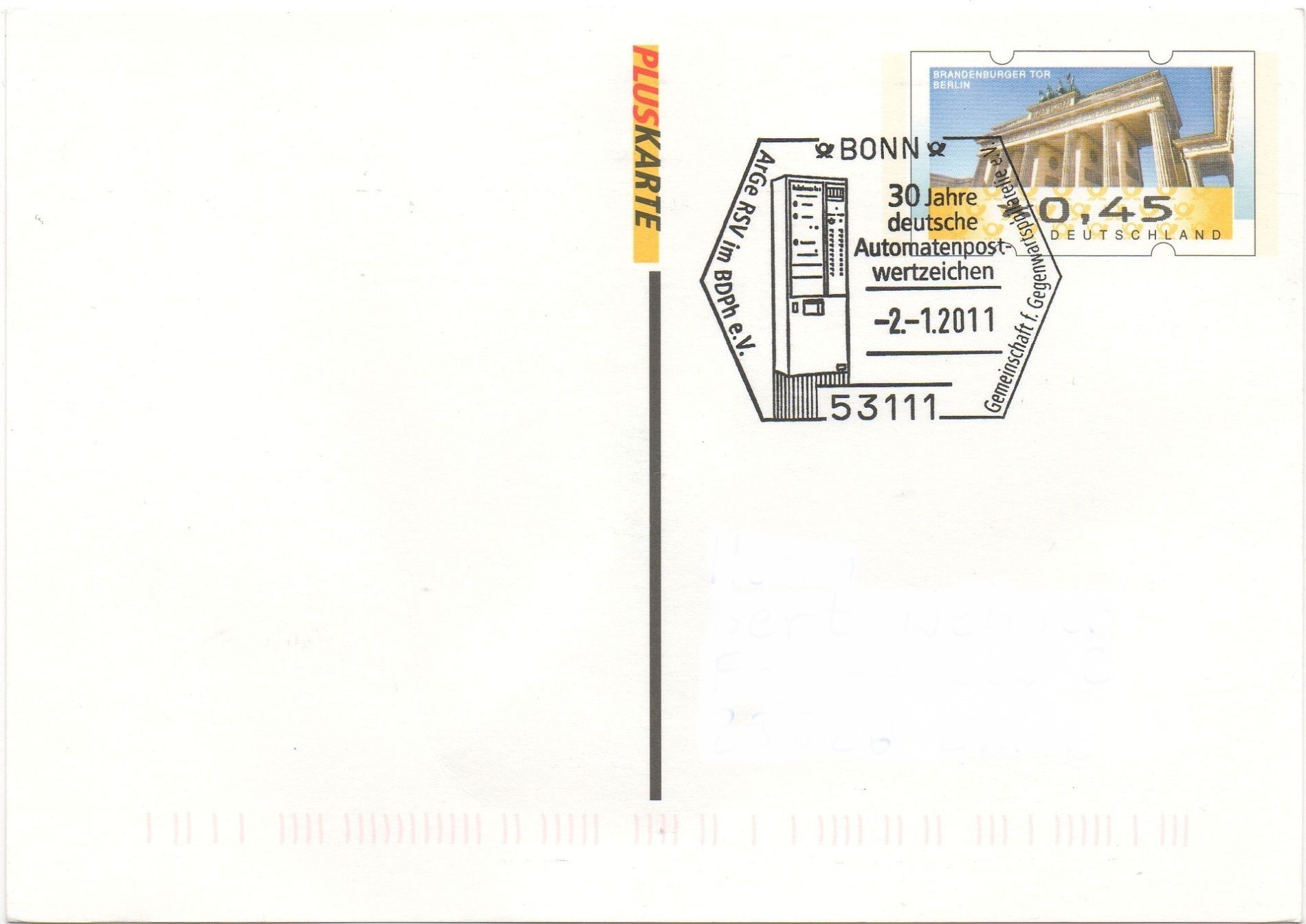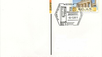 Diesen passenden individuellen Plusbrief vom RSV zum 30-jährigen Jubiläum deutscher ATM mit korrektem dazu passenden Sonderstempel aus Bonn vom 02.01.2011 will ich dann auch noch hier vorstellen!