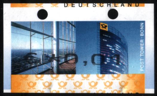 Gestern war ich in Hamburg u.a. am Hauptbahnhof, wo draußen gleich drei Automaten nebeneinander stehen (drinnen war noch einer!). Ich hatte dann die "freie Auswahl" und nahm erstmal den ganz linken und siehe da, der Wertaufdruck ist noch weiter unten, so dass auch dort - nicht immer aber immer öfter - Teile des Wertaufdruckes (zumindest der untere Teil des Kommas) oben zu sehen sind. Weil nur noch wenige Marken auf der Rolle waren, habe ich den Rest gleich mitgenommen und ein schönes - verlängertes - Übergangsstück vom/zum Rollenwechsel bekommen, wo gleich zweimal der komplette Wertaufdruck zu sehen ist. Leider ist dafür das mittlere Stück ein wenig zu kurz geraten (was sind das auch für schlechte Automaten, die einem "normalen" Postkunden so etwas anbieten...).