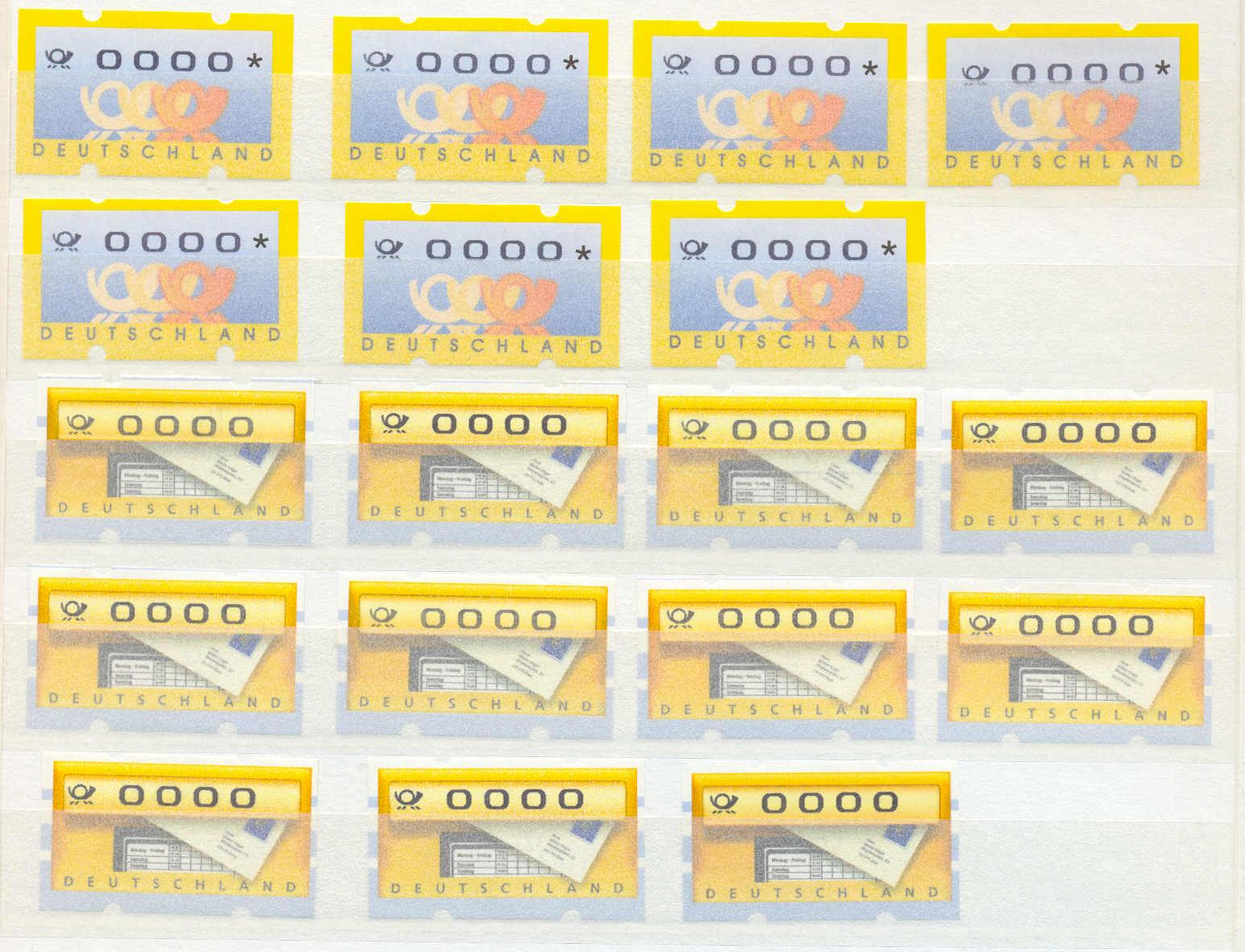 Leider habe ich keine Null bzw. **** Drucke von den neuen Ausgaben. Wo ich in Bielefeld gewohnt habe, hatte ich eine kleine Postfiliale, da hat der Techniker die Marken fein säuberlich in den Mülleimer entsorgt. Der Mülleimer wurde nicht häufig benuzt und auch nicht häufig geleert. Da sind die Funde über einen kurzen Zeitraum.