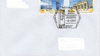 Das Briefzentrum 53 (Bonn) hat dann auch noch den neuen automatischen BZ-Stempel gleich viermal verwendet! Meines Erachtens hätten die beiden Leerfelder (oben) nicht gestempelt werden müssen.