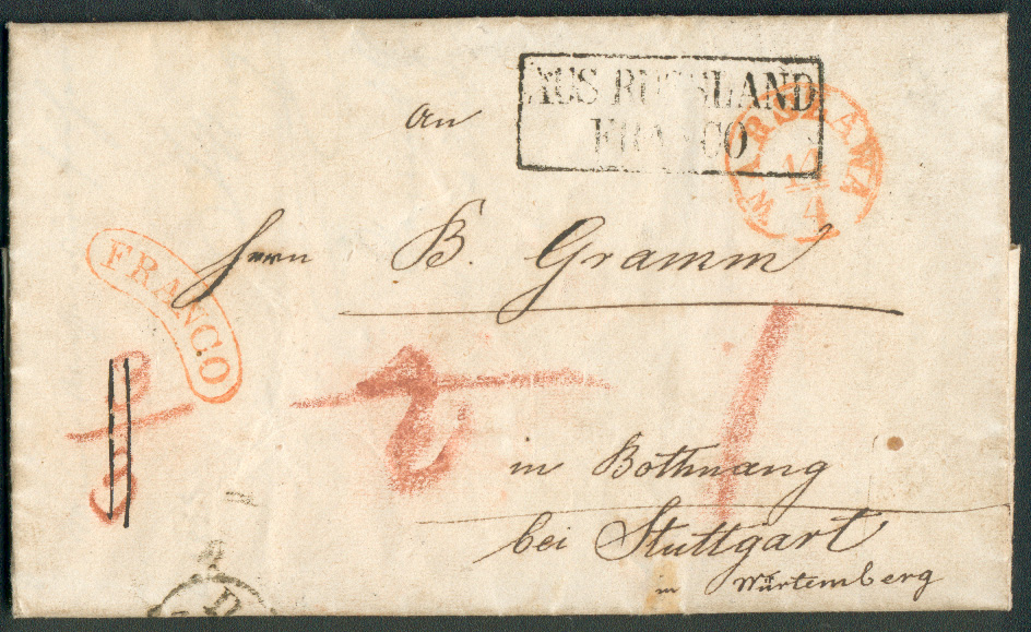 herzlichen Dank für das Zeigen von diesen sehr schönen und sehr seltenen frankierten Brief von Württemberg nach Rußland.