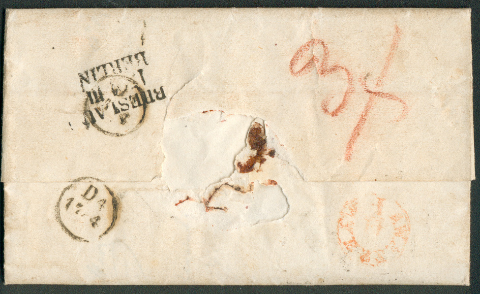 10 Silberkopeken kostete es vom Aufgabeamt bis zur preußischen Grenze, die hinten in 3 Sgr. reduziert wurden. Dazu kamen 3 Sgr. für Preußen als Vereinsaufgabepost, so dass 6 Sgr. eigentlich zu zahlen waren.