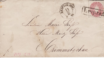 heute habe ich einen Bahnpoststempel der den typisch preussischen L3 Bahnpoststempeln entspricht. Er wurde auf der Strecke Chemnitz - Leipzig am 18.7. (Zug-Nr.) IV abgeschlagen.