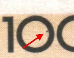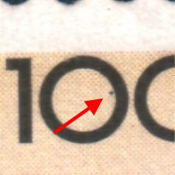 2. Druckabweichung: Schwarzer Punkt in der ersten "0" der Wertziffer "100"
