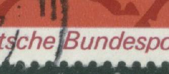 Auf Feld 13 kommt ebenfalls ein netter Fehler vor: "verbreiteter Bildrand über "De" von Deutsche" (die obere der gezeigten Marken). Könnte man im ersten Moment für eine Passerverschiebung halten, kommt aber, wie gesagt, in jedem Bogen vor. Nochmals viel Erfolg beim suchen.