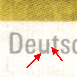1. Druckabweichung: Großer grauer Haken durch "u" von "Deutschland"