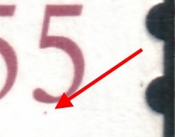 Hallo Plattenfehlerfreunde, bei Mi - Nr. 2330 kann man wohl verschiedene Druckabweichungen, wie zum Beispiel braune Punkte oder Flecken und die verschiedensten Brüche bei den Buchstaben feststellen. Zum Abschluss ist mir jedoch nur eine Mehrfachfund aufgefallen. Dies ist: Brauner Fleck unterhalb der zweiten "5" der Wertziffer "55". Einzelfunde wurden bzw. werden noch unter vorgestellt.