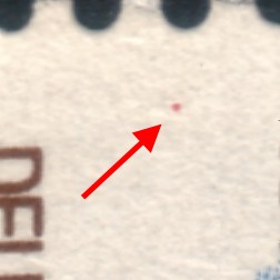 Hallo, kurz vor Jahresende noch ein Mehrfachfund. Mi-Nr. 338 mit rotem Fleck im oberen Markenrand, mittig oberhalb der Rosette.