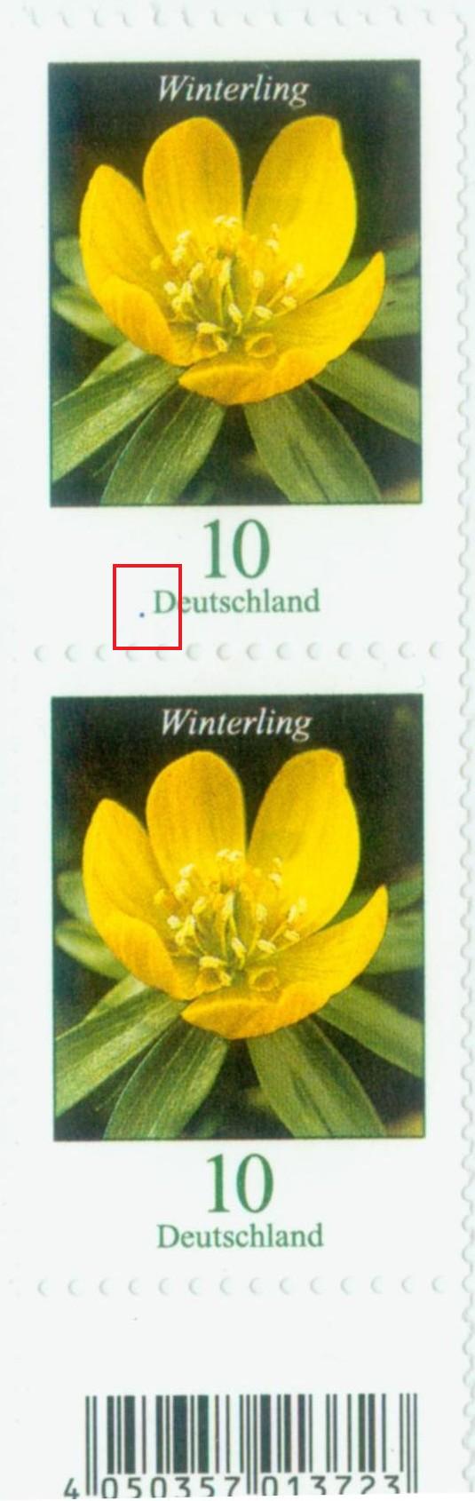Hallo, möchte die Seite für Druckabweichungen der BRD wieder einmal in Erinnerung bringen. Einen Mehrfachfund der Mi-Nr. 2643 mit blauem Fleck oberhalb der Wertziffer "145". Weitere Funde unter http://www.pospis-welt.de