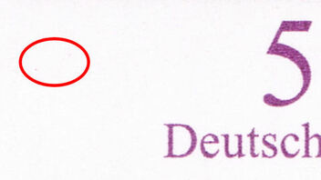 Weißer Punkt am Abschluss "E" von "DEUTSCHE"