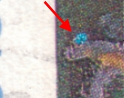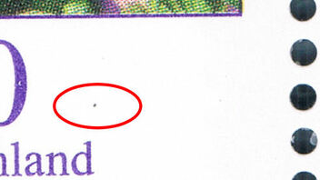 1. Druckabweichung: Großer blauer Punkt im Markenbild unter "RO" von "EUROPA"