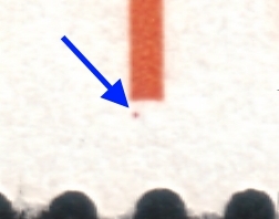 Verschiedene Druckabweichungen sind bei mir mehrfach vorhanden. Einer dieser ist: Blauer Punkt zwischen der "1" und der "0" der Wertziffer