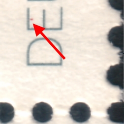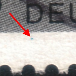 2. Druckabweichung: Roter Punkt im unteren Markenrand, unterhalb "N" von "DEUTSCHLAND"