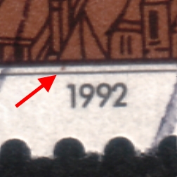 1. Druckabweichung: Brauner Punkt links vor der "1" der Jahreszahl "1992"