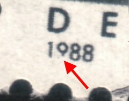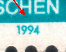 1. Druckabweichung: Brauner Punkt links vor der "1" der Jahreszahl "1992"