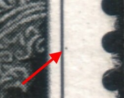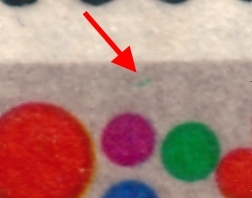1. Druckabweichung: Schwarzer Punkt im rechten Markenrand