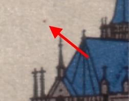 1. Druckabweichung Mi - Nr. 1722: Kleiner Punkt linken neben der Kirchturmkreuz des rechtesten Kirchturms
