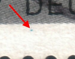 2. Druckabweichung: Blauer Punkt im unteren Markenrand unterhalb "D" von "DEUTSCHLAND"