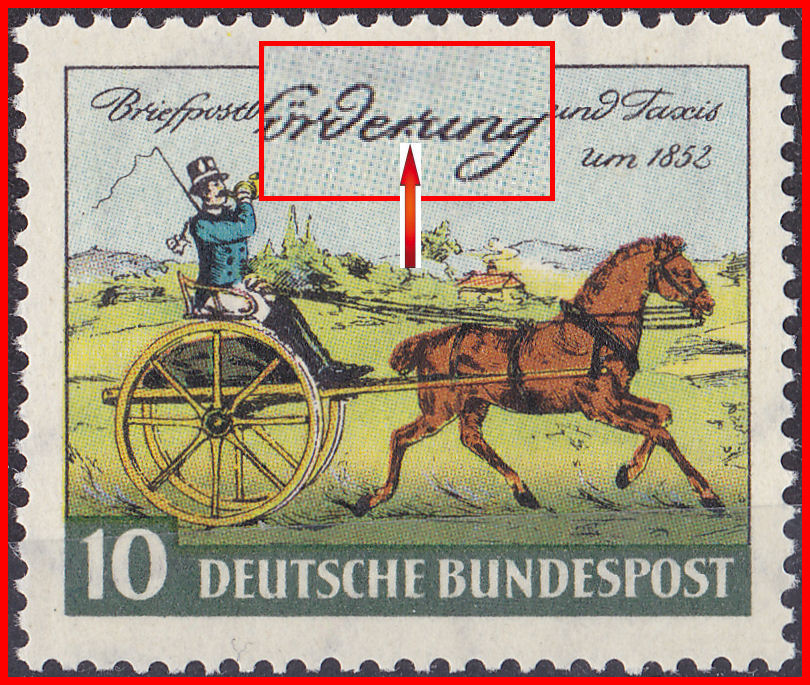 Den Punkt im dritten r von "Briefpostbeförderung" finde auch auf einem meiner Bögen (Feld 16).