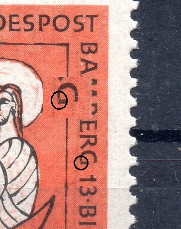 Hallo, heute einer meiner neusten Mehrfachfunde. Mi - Nr. 2552 mit zwei kleinen Punkten im rechten Markenrand unterhalb "sc" von "Deutschland".
