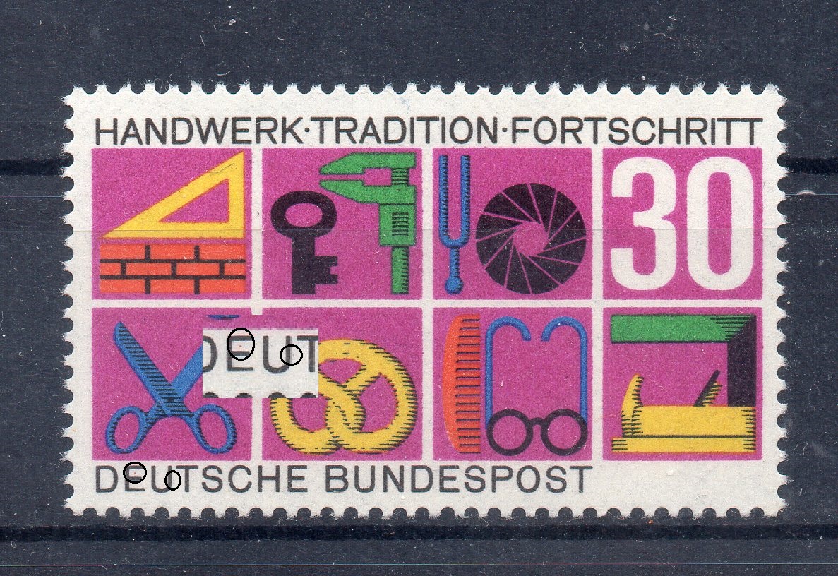 Heute Marke Mi - Nr. 677 aus dem Jahr 1971 die noch nicht in einem Katalo aufgetaucht ist. Trotzdem kann ein Mahrfachfund vorgestellt werden. Hellroter Punkt im oberen Markenrand oberhalb "EU" von "DEUTSCHE". Vielleicht werden auch andere Sammler fündig.