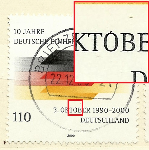 Ich möchte heute eine Druckabweichung der Mi-Nr. 2648 aus dem Jahr 2008 vorstellen. Die Marke Mi-Nr. 2648 ist mit sehr vielen Druckabweichungen (Druckzufälligkeiten) übersät. In allen Formen und Größen sind blaue, rote und gelbe Flecken vorhanden. Ebenso könnten Farbausfälle registriert werden. Es wurden von mir aber nur sehr wenige Mehrfachfunde festgestellt. Die Druckabweichung, -Weißer Halbkreis am oberen Bildrand links von "DEUTSCHLAND"- ist einer der Mehrfachfunde. Weitere Funde werden unter vorgestellt.