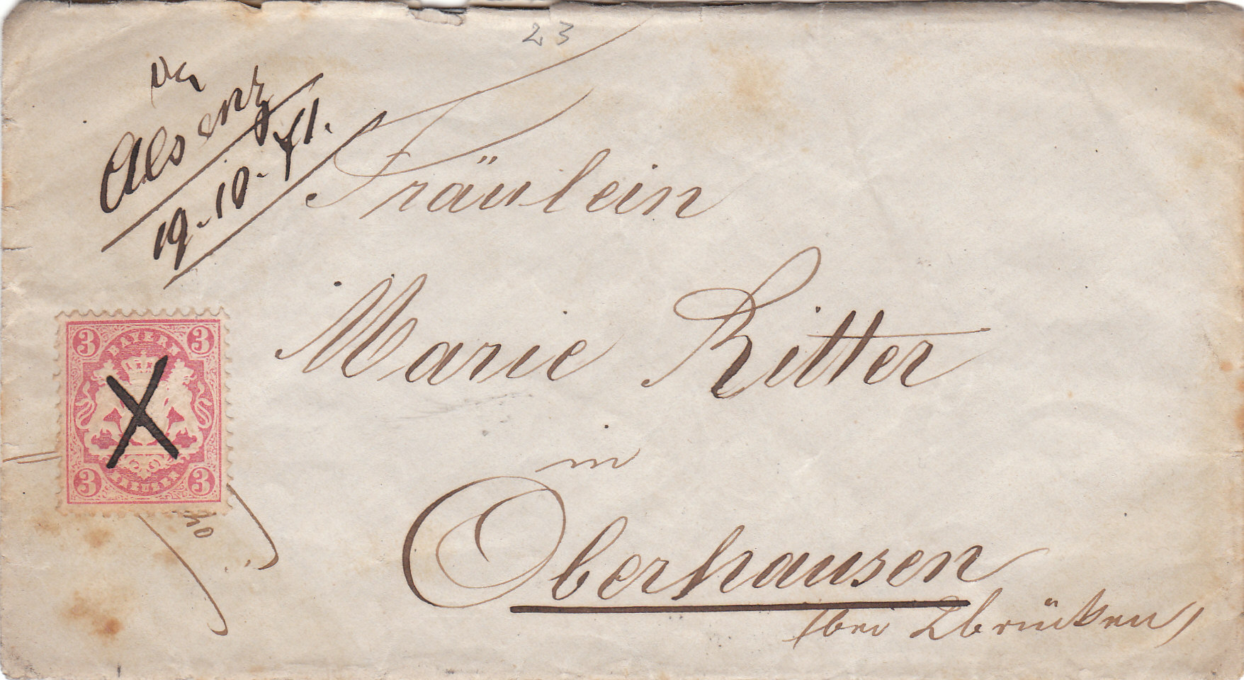 Das untenstehende Briefchen wollte ich eigentlich nicht kaufen, weil mir die Erhaltung zu schlecht war - aber als ich den Preis hörte, habe ich es doch mitgenommen - eine Nr.23 + Nr.24 auf Brief, für schlappe 5 Euro musste der Brief unbedingt mit. :jaok: