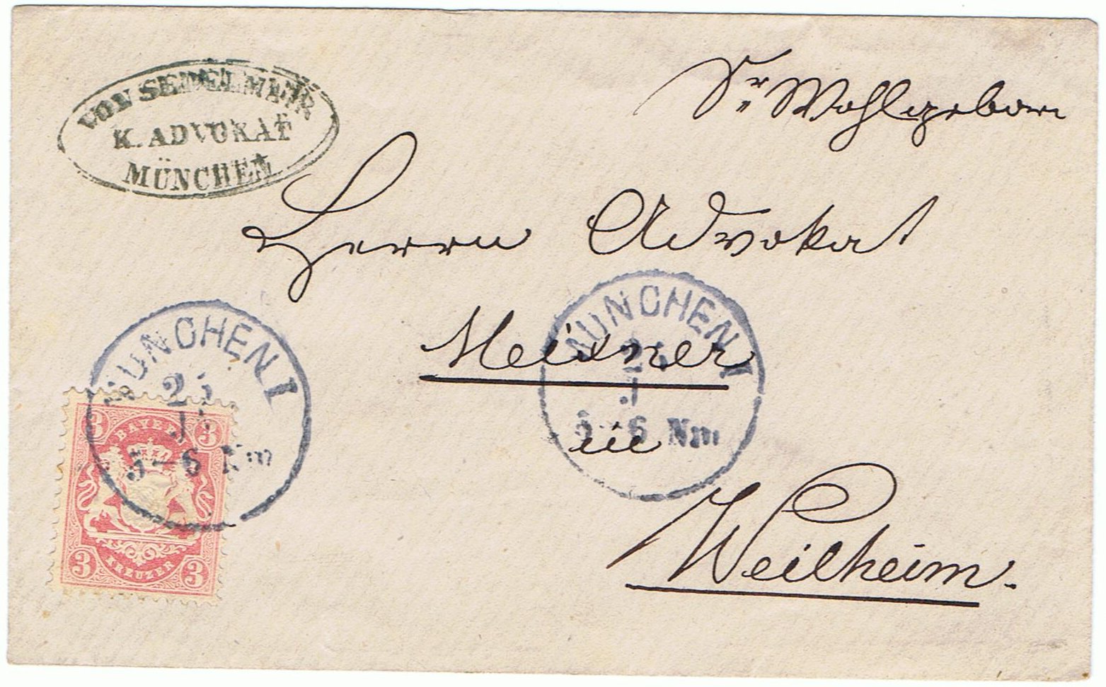 Die Post in München hat die 36 Kr. zwar verklebt, sie aber der Briefpostexpedition in Unterpeissenberg in Auslage angerechnet, also ihr belastet. Dass ein Peissenberger Sammler das nicht gekauft hat, wundert mich doch sehr. :oneien: