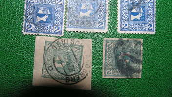 Die oberen drei Stück sind entweder privat gezähnte Zeitungsmarken, oder amtlich gezähnt worden. Die unteren beiden sind Ganzsachenausschnitte. Der Wert der oben gezeigten Marken wird im ANK mit "Privat gezähnte Stücke = dreifache Preise" angegeben was aus 20 Cent dann immerhin 60 Cent Katalogwert/Stück macht.