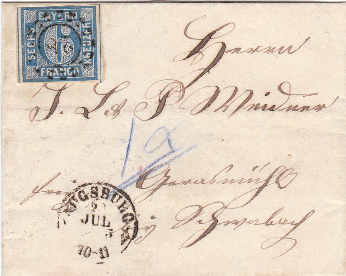 auf dem Brief von bayernklassisch sehe ich außer dem Stempel ein X, also eine Entwertung des Aufgabe-Postamts Augsburg; richtig?