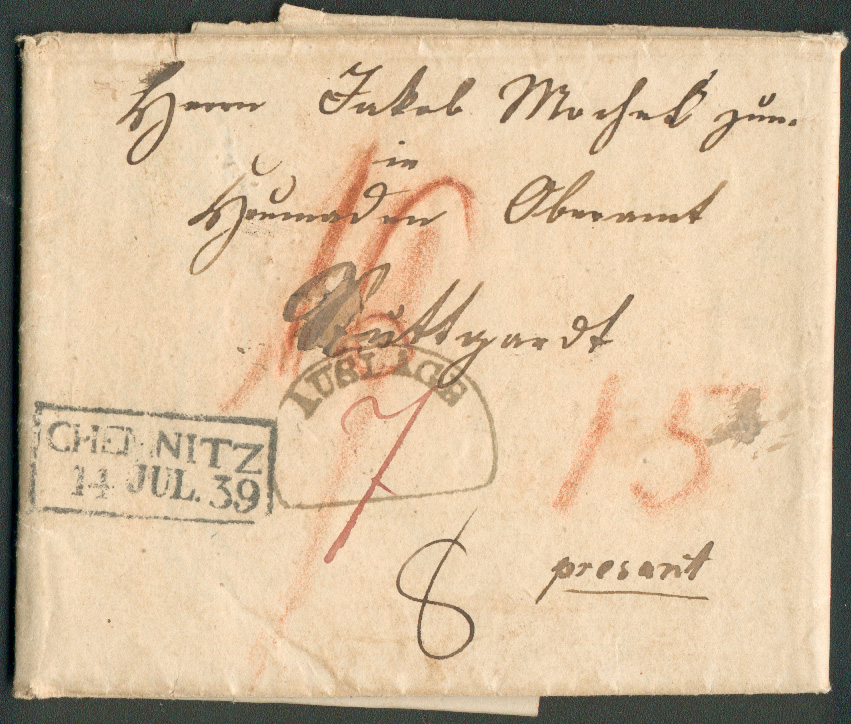 Im AUSLAGE Stempel stehen 16 Kreuzer (Porto von Dresden