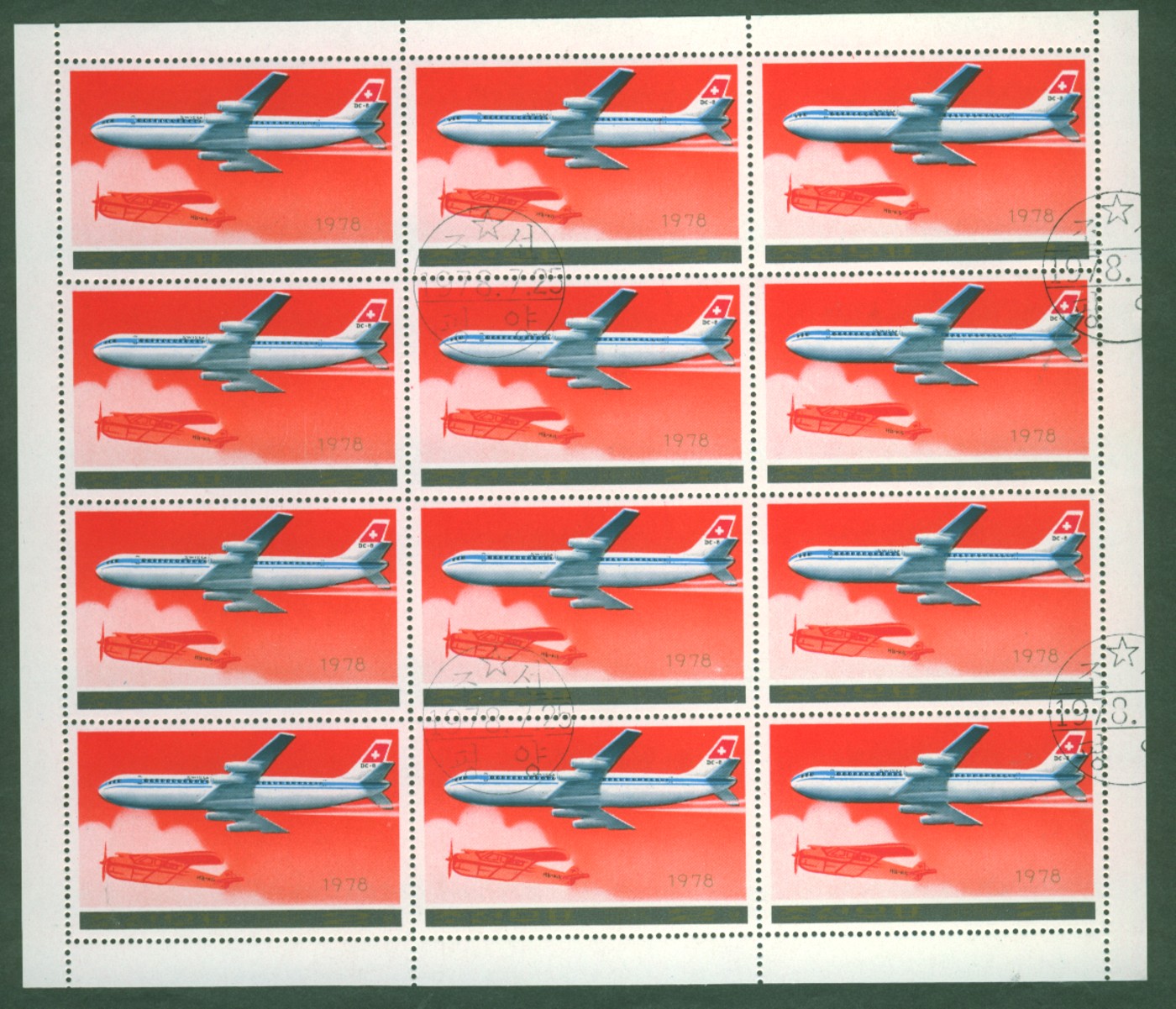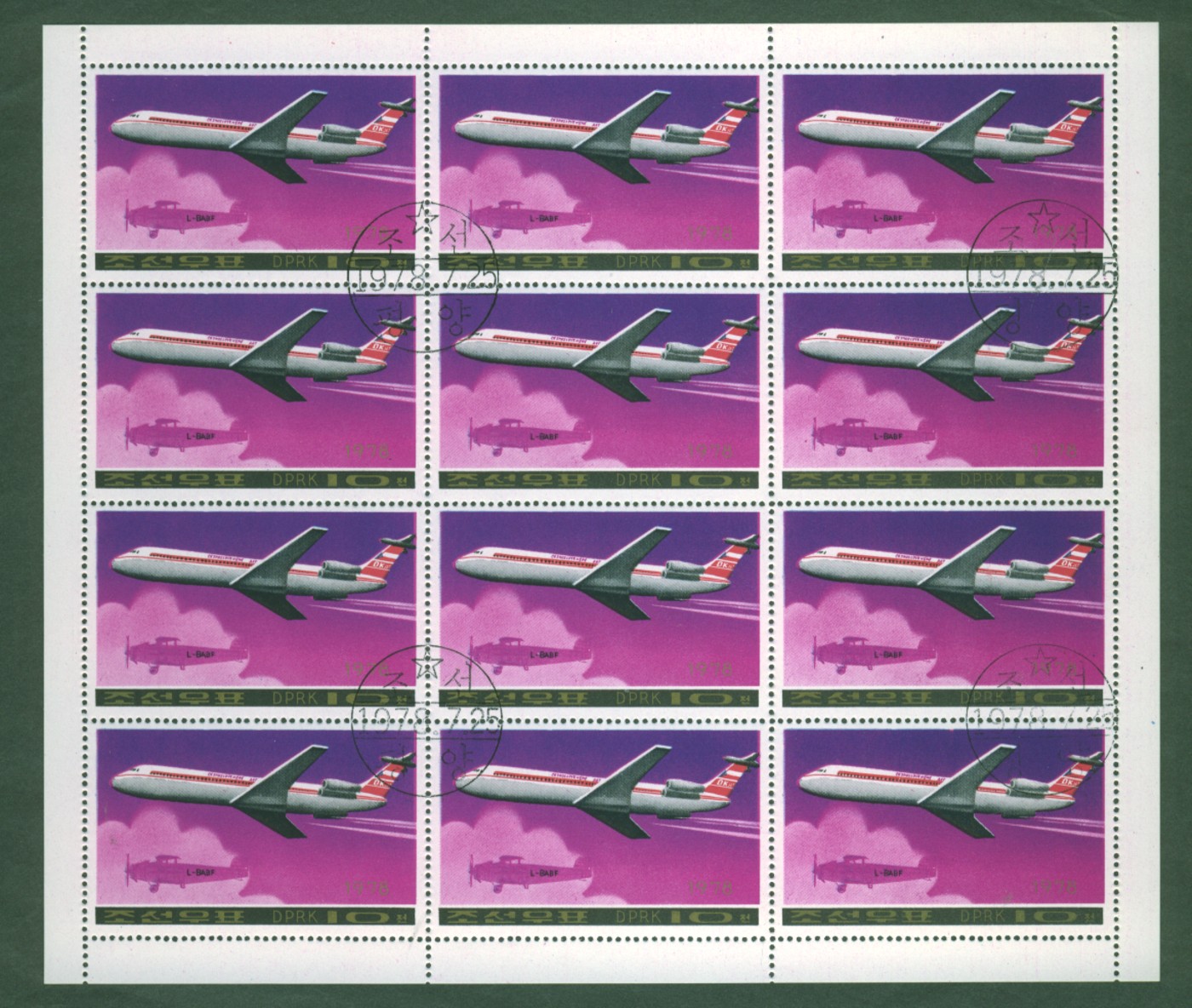 Die anliegenden Bogen mit Flugzeugmotiven kann ich Euch anbieten. Es sind wohl Bogen aus Nordkorea. Leider kenne ich weder die Marken, noch den Katalogwert.