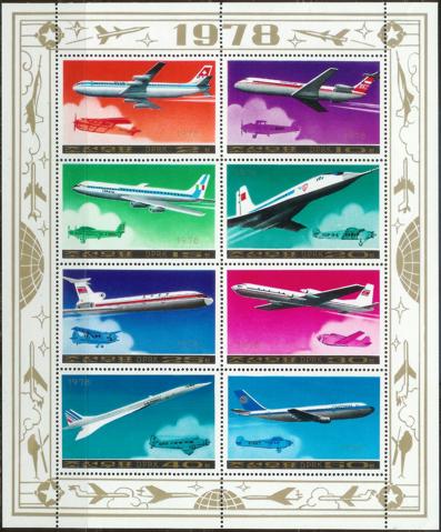 Die anliegenden Bogen mit Flugzeugmotiven kann ich Euch anbieten. Es sind wohl Bogen aus Nordkorea. Leider kenne ich weder die Marken, noch den Katalogwert.