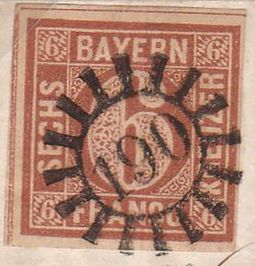 Der Stempel 190, es gab zu den Zeiten der Erstausgabe nur einen davon, zeige ich mal auf einem Brief von mir mit der 4I, der absolut authentisch ist.