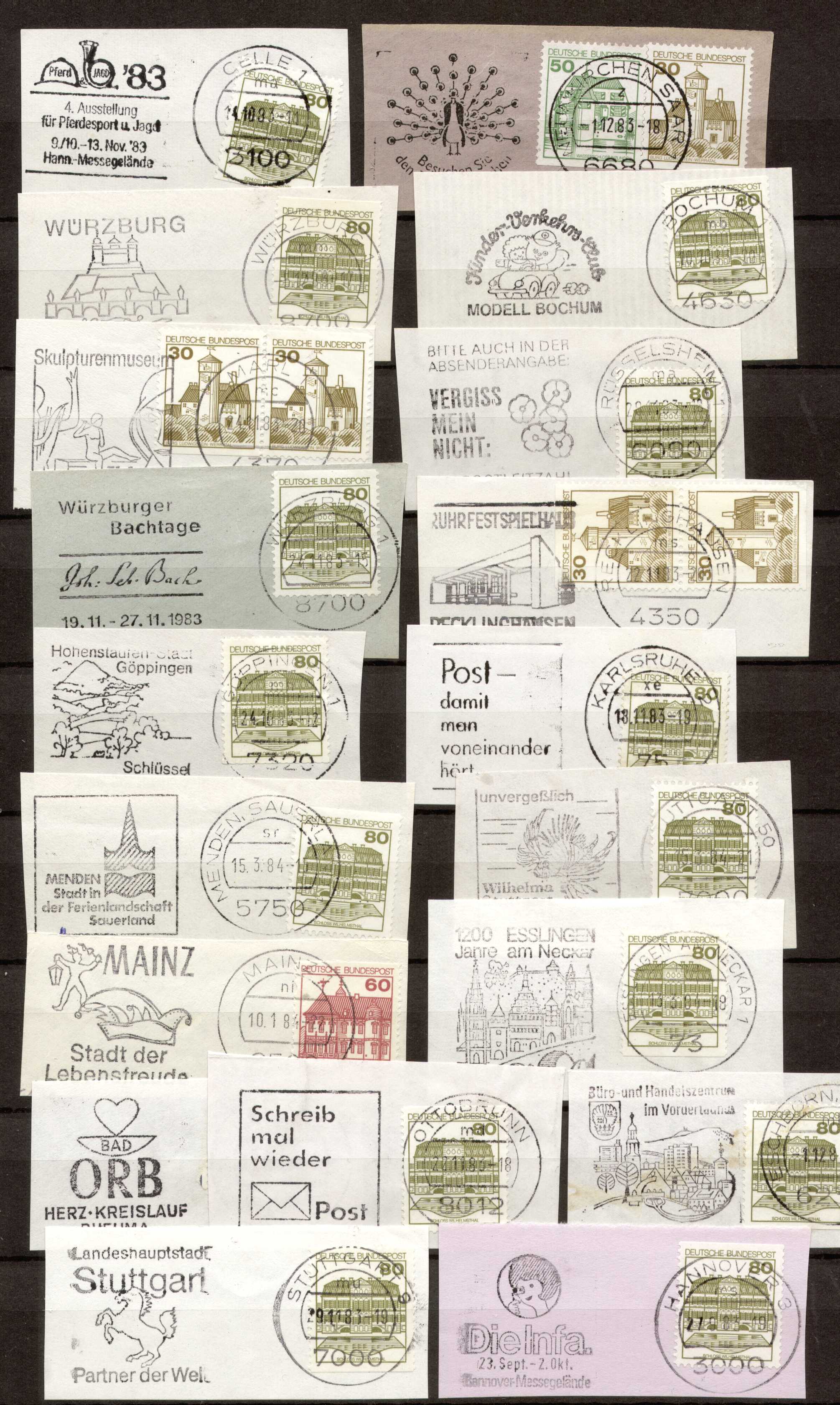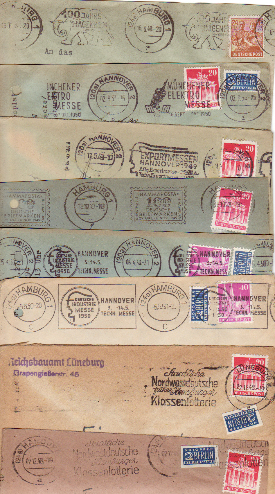 Dabei ist auch eine Sammlung von Briefausschnitten nicht nur der Marken, sondern auch der anhängenden Werbestempel.