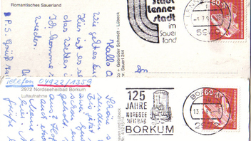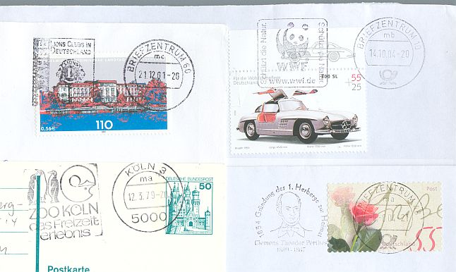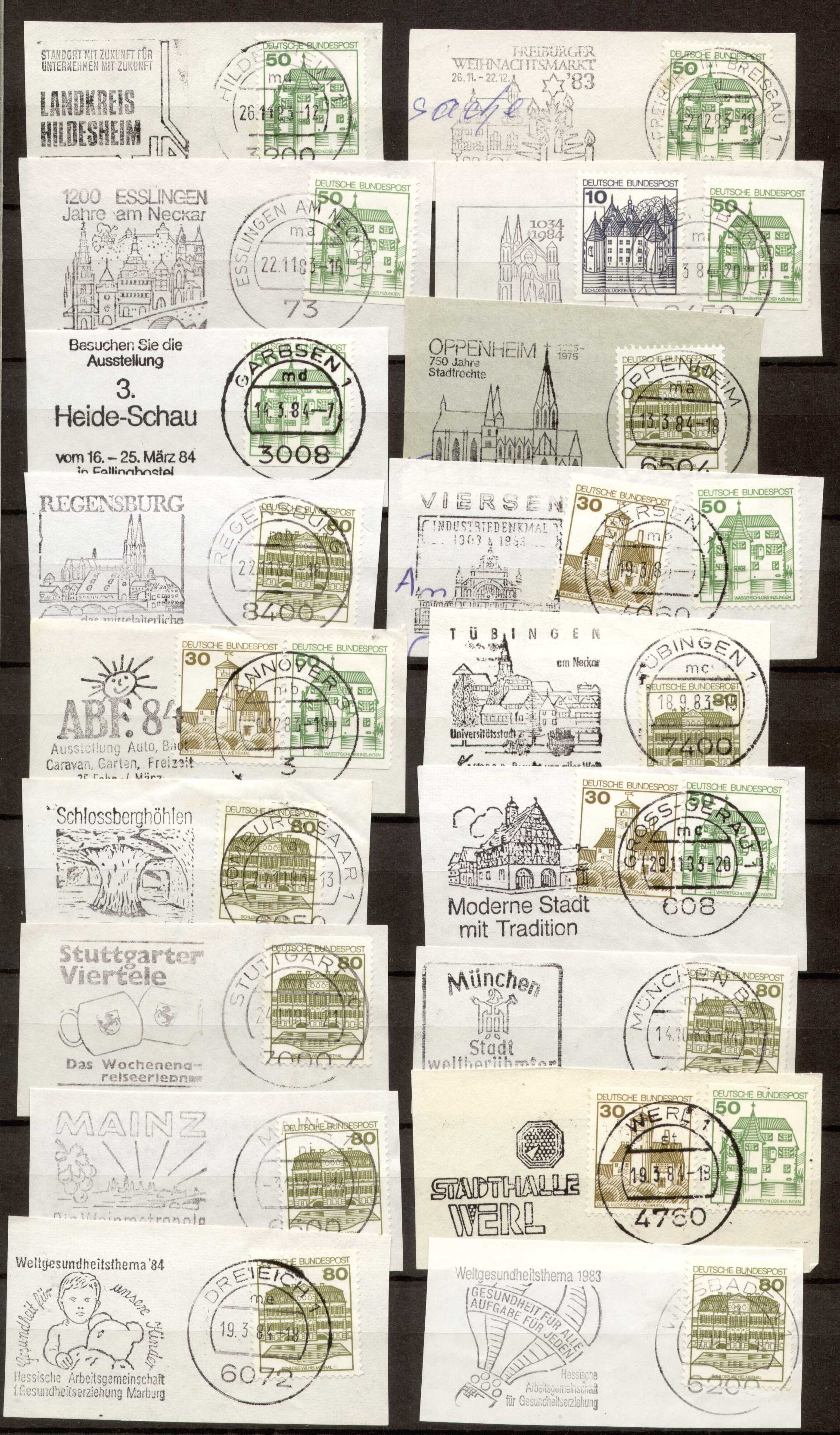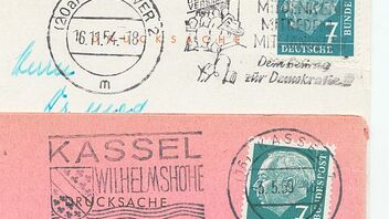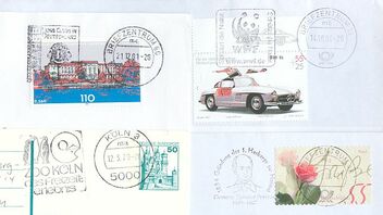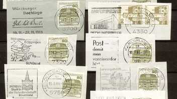 Dabei ist auch eine Sammlung von Briefausschnitten nicht nur der Marken, sondern auch der anhängenden Werbestempel.