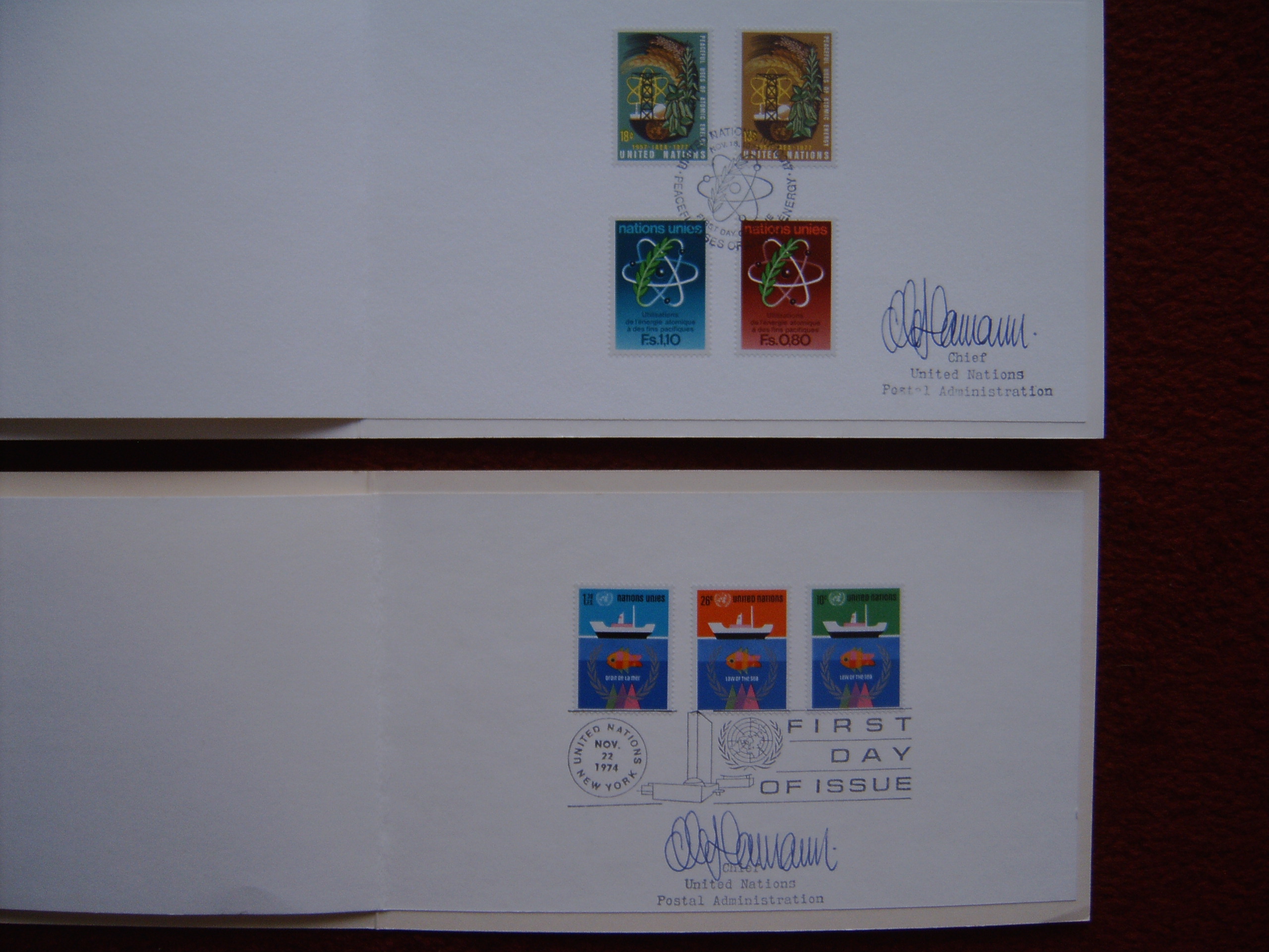 Hab dann mal eine Weile im Internet gestöbert um zu sehen um was für Marken es sich da handelt. Meiner Meinung handelt es sich dabei um "First Day Covers" der UNO. Ich hab sie jetzt mal nach Jahrgängen geordnet und abfotografiert. Bei den Jahrgängen handlet es sich von 1959-1977. Aber leider nicht vollzählig. So gut wie alle sind aus New York. 4 aus Genf. Wenn jemand Intersse hat und mir sagen könnte ob die überhaupt was wert sind oder ich einem Sammler damit eine Gefallen tue, bitte meldet Euch bie mir. Ich kann dann entsprechende Bilder per email verschicken da der Dateianhang hier beschränkt ist. Meine Adresse: ehmaik@web.de