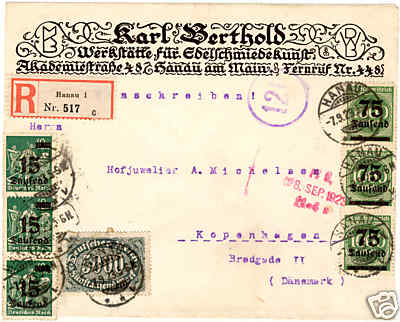 Coburg 1922, Brief mit P.Ü. Stempel.