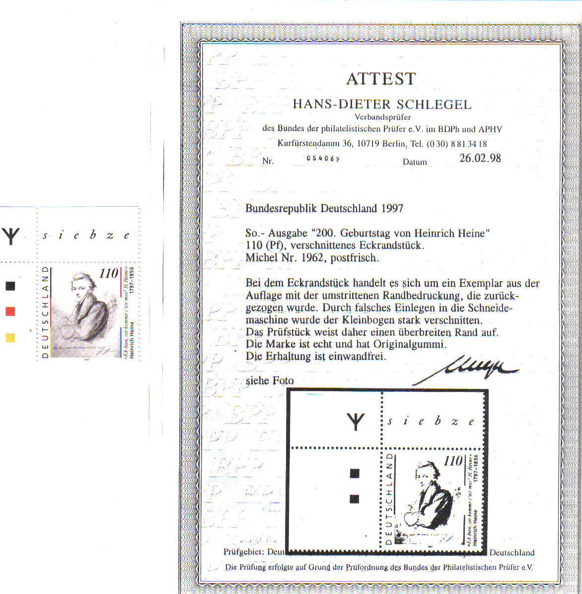 wollt euch hier mal ein interessantes (geprüftes) Eckrandstück von H.Heine zeigen.