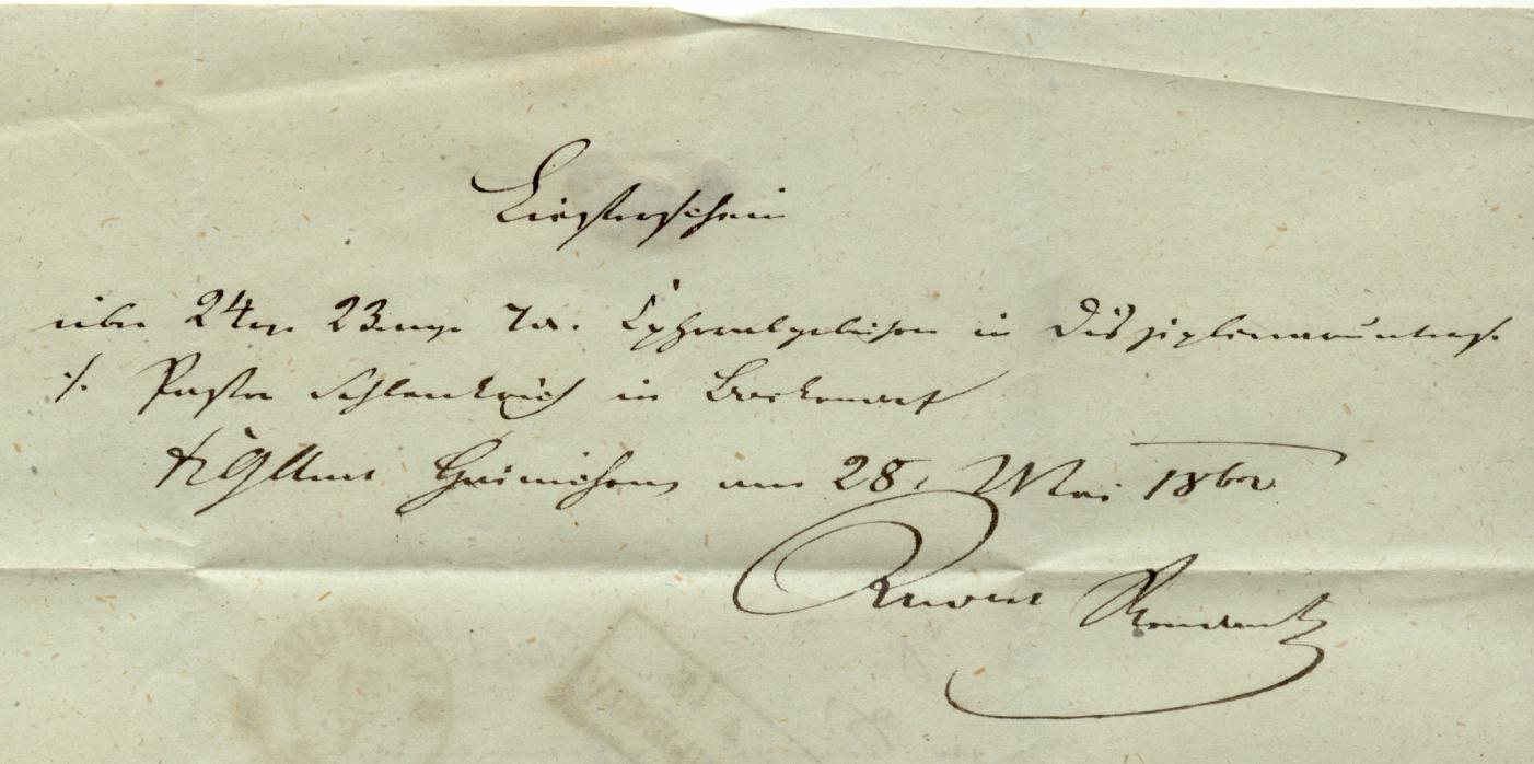 Der Betrag von 24 Reichtsthalern, 23 Groschen und 7 Pfennigen war per Lieferschein für Verwaltungsgebühren in einem Disziplinarverfahren versandt worden.