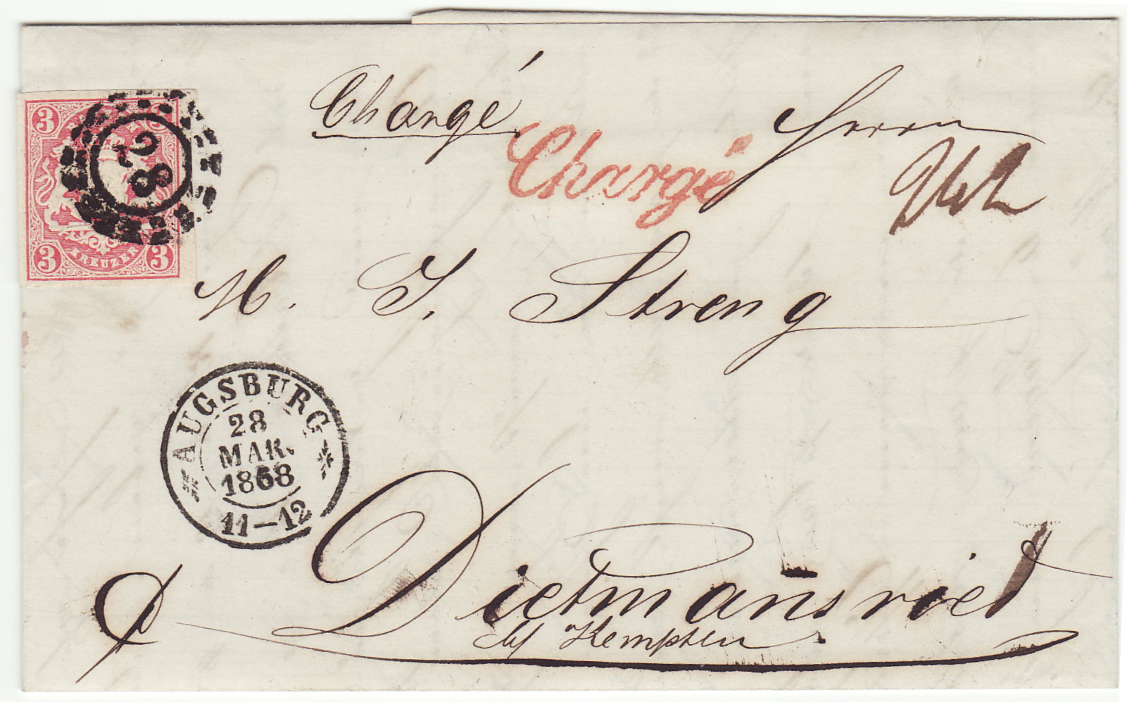 2. Charge-Brief von Augsburg nach Dietmannsried (28.03.1868)