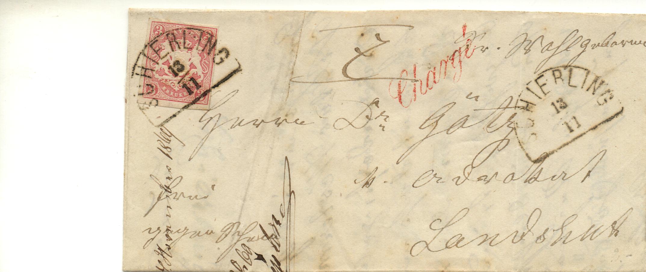 Chargé - Brief vom 13.11.1869 von Schierling nach Landshut aus der Götz-Korrespondenz.