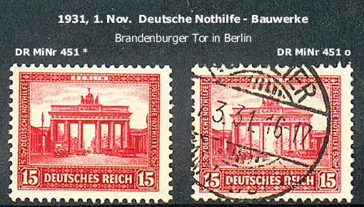 Dieses Motiv wurde erstmals für den Block 1 (IPOSTA-Block) vom 12. September 1930 ~DR MiNr 447~ verwendet und erschien als Einzelmarke am 1. Nov. 30 in dem Satz Deutsche Nothilfe - Bauwerke als DR MiNr 451.