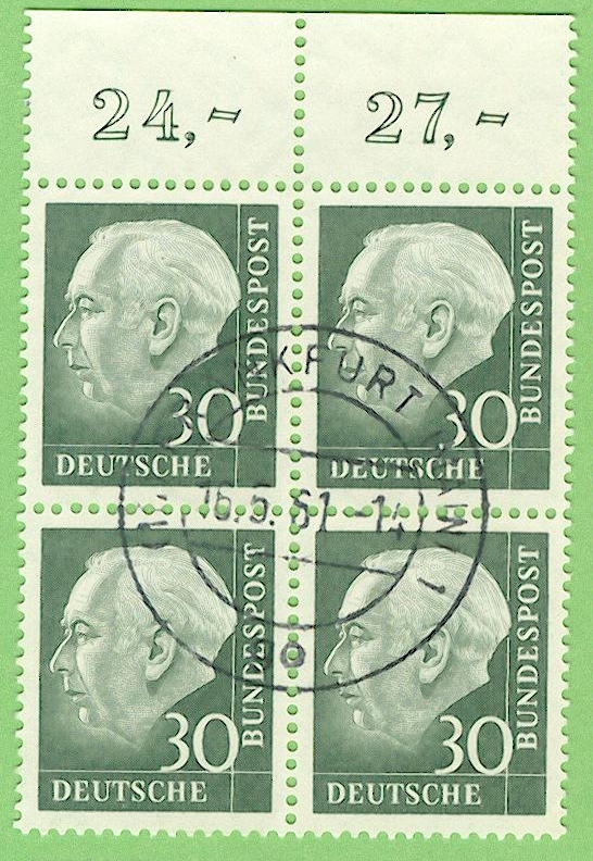 hier mal ein Stempel auf Heuss-Lumogen, wie er seinerzeit tatsächlich im Frankfurter Hauptpostamt verwendet wurde.